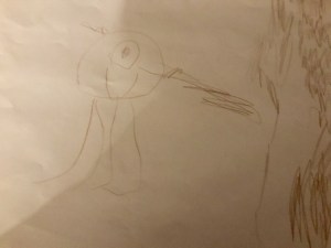 This morning, Adi spoke to share of a snowman she saw and then an interesting tree branch. As I walked her into school, I asked if she could draw me the snowman and the branch, since I hadn’t seen them. To my surprise, there were two colored pencil drawings in her mailbox at pickup.
