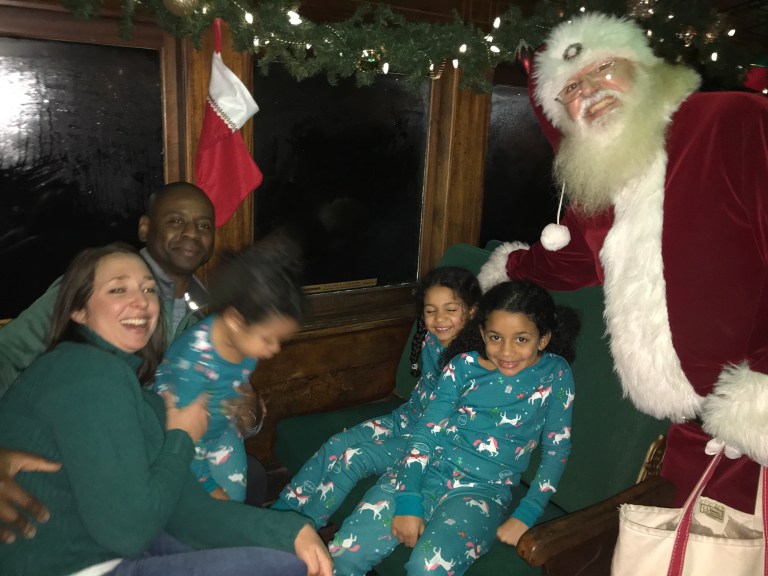 On Saturday evening, our family took our fourth journey on the Essex Polar Express. The girls were dressed in their matching unicorn Christmas pajamas and bursting with excitement… and a few nerves from Rose. “But it’s dark,” she kept saying.