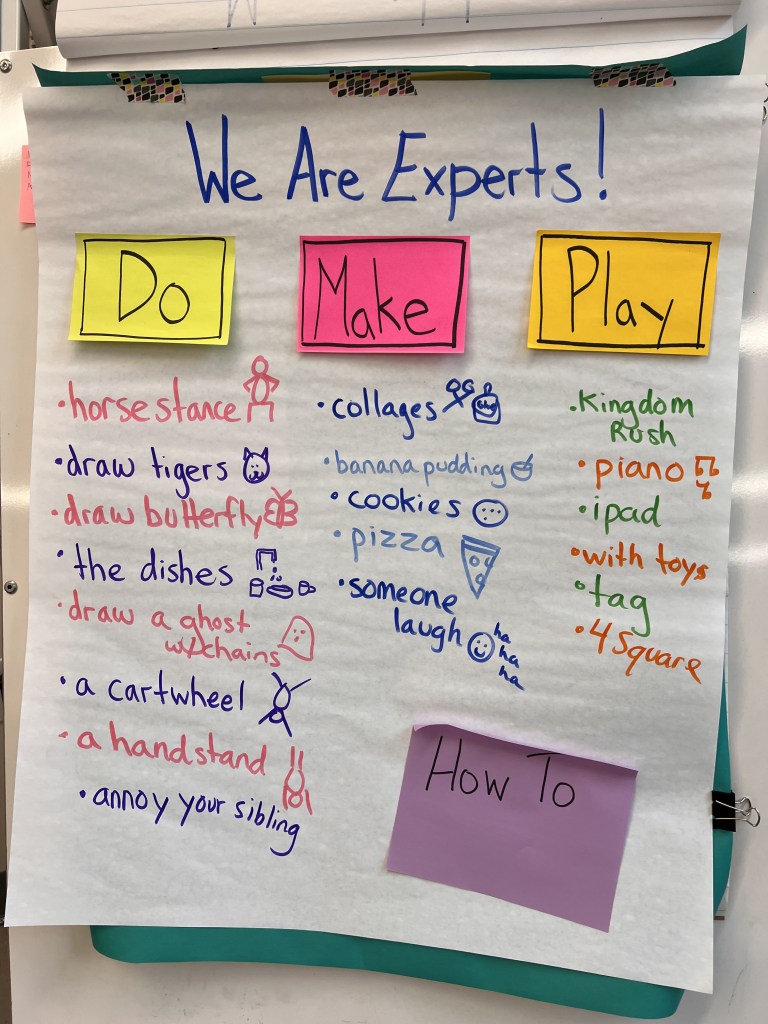 A quick stop in fourth grade, where I found students in various stages of their feature articles. I met with two students who were co-authoring a two part piece. There was a lot of negotiating about who would write each part. I think they have a plan for writing…tomorrow. Not sure how much I helped.