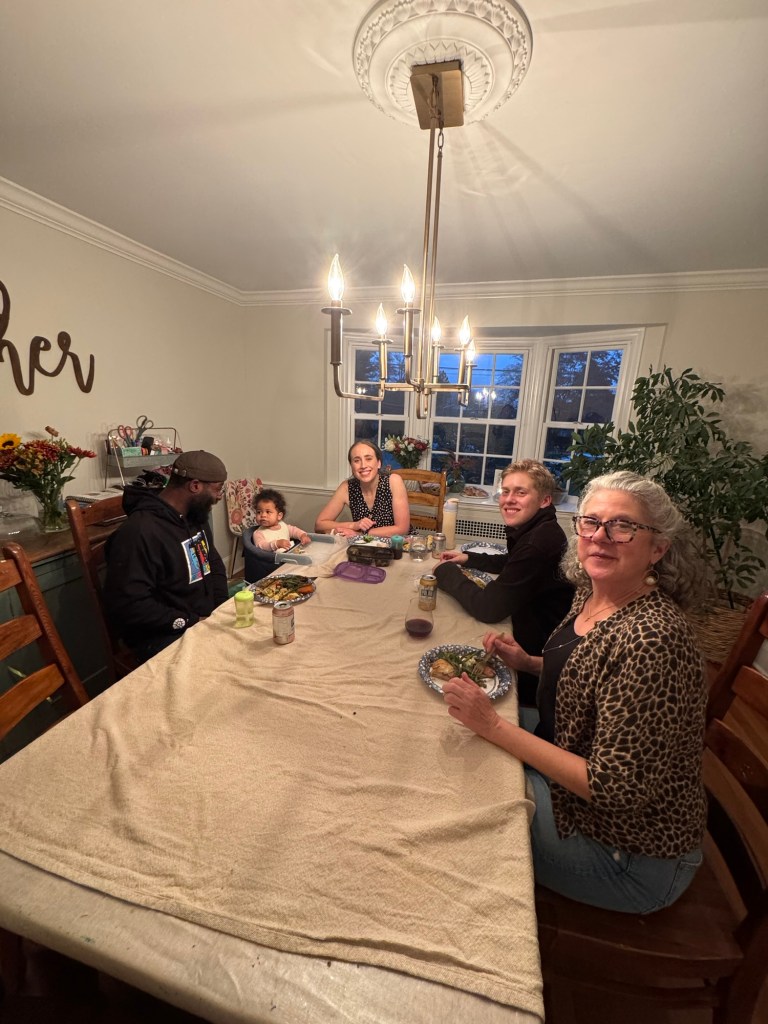 As Arnauld and I made our own plates in the kitchen, I nudged him. “It’s sweet how they appreciate all that food you made. They love Thanksgiving just like you.”