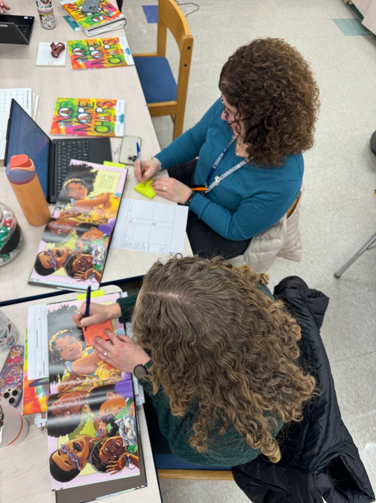 In some of our pd sessions around read-alouds, teachers have said, “Can’t you just give us the plans?” While that may feel easier and would ensure perhaps more cohesion, I’m encouraged by the energy that can come from giving teachers space to be curious and I’m going to continue thinking about ways to make space for this work.